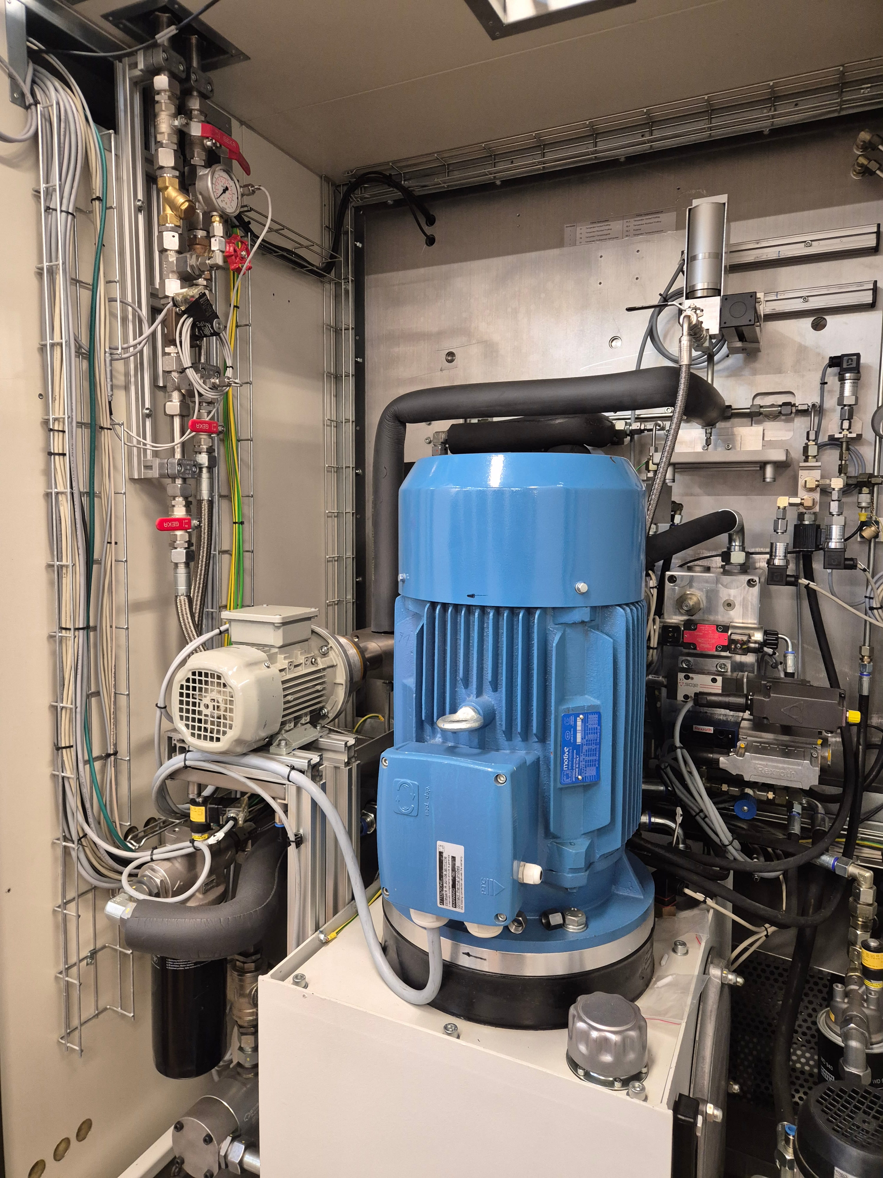 Die modernisierte Hydropulsations-Prüfanlage wurde mit einer 2-Prüfkammer-Ausführung realisiert. Jede Kammer verfügt über bis zu vier Aufnahmeplätze, sodass insgesamt maximal acht Prüflinge gleichzeitig getestet werden können.